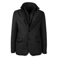 Step out in sophisticated elegance with this exquisite ‘Made in Italy’ men’s coat, crafted from a sumptuous blend of wool and cashmere. A testament to Italian craftsmanship, this black coat boasts a sleek button closure complemented by an ingenious internal faux vest, designed for effortless removal with its zip closure. Perfect for the modern man who values the luxurious touch in his wardrobe essentials.