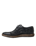 Black Woven Goat Leather Lace Up Derby Shoes