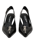 Black Zipper Leather Heels Slingbacks Shoes