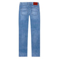 Elevate your denim game with the suave Tramarossa Michelangelo jeans. These Italian-crafted jeans offer a slight stretch for unparalleled comfort, all while showcasing a timeless faded blue hue that exudes casual elegance. Featuring a convenient zip and button fastening and a classic five-pocket design, these jeans are perfected with a smooth red leather patch that adds a dash of luxury to your wardrobe. Bold, contemporary, and effortlessly stylish, they’re a quintessential piece for the fashion-forward gent.