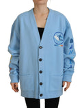 Blue Cotton Knitted Buttoned Cardigan Sweater