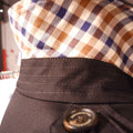 Step out in undeniable style with Aquascutum’s expertly crafted blue cotton double-breasted trench coat. A sartorial staple that boasts elegance with a striking check interior and a refined tone-on-tone belt to cinch your look with sophistication. Exude confidence in Italian tailoring, buttoned epaulettes, and crisp lines. Perfect for the modern man who seeks a blend of tradition and trend.
