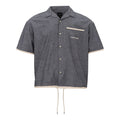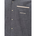 Armani Exchange Dark Denim Short Sleeve Shirt. Front button fastening, small collar with V-neck, squared line and regular fit, wide sleeves, patch pocket on the side and contrasting printed logo. Contrasting piping on sleeves and hem, adjustable drawstring. Composition: 100% Cotton-Sku inside:24FEB111