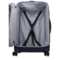 The product with MPN BV4733X19BLU and code F83832 fabric in blue is a trolley designed by Piquadro. It has features like front logo, removable details, adjustable handle.