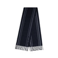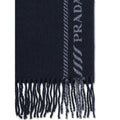 The virgin wool and cashmere Scarf by Prada is an elegant and versatile accessory. Crafted from soft blue virgin wool and cashmere, it is enriched with a refined grey striped pattern and logo inlay along the edges. Fringed hems add a timeless and distinctive finish.