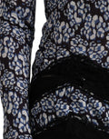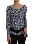 Blue Floral Lace Long Sleeves Top Underwear Blouse