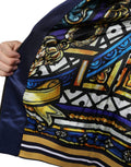 Absolutely stunning, 100% Authentic, Dolce & Gabbana blue sweatshirt with a large heraldic patch on the left chest with wide star panels accentuate the sleeves, and a striped motif on the waistband and cuffs.