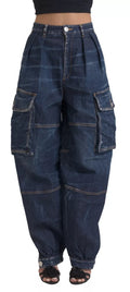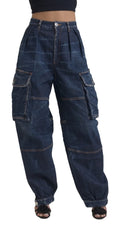 Blue High Waist Cotton Cargo Baggy Denim Jeans