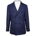 Loro Piana Fabric Summertime double-breasted navy blue color linen-wool blend jacket with peaked lapels, two front pockets and breast pocket, two inside pockets