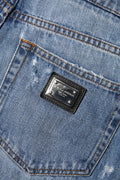 Blue Logo Plaque Denim Cotton Hot Pants Shorts