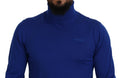 Blue Logo Print Long Sleeves Turtle Neck Sweater