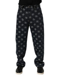 blue jeans feature a bold logo print, adding a modern edge to a timeless silhouette. Cut in a straight-leg fit, they are crafted from premium denim for durability and comfort. A classic five-pocket design and mid-rise waist complete the look, making them a versatile statement piece for casual and elevated streetwear styles.
