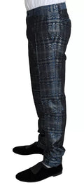 Blue Silver Shiny 2 Piece Slim GOLD Suit