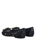 Gorgeous, brand new with tags 100% Authentic Dolce & Gabbana elegant Vally shoes are exquisitely crafted in Italy from the finest Taormina lace. Seen here in dark blue, these pretty floral lace Vally slippers from Dolce & Gabbana will instantly lift your look to new sartorial heights. Featuring an almond toe, a branded leather insole and a wearable flat leather sole, these beauties are finished with a sparkling decorative crystal flower on the front.
