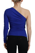 Blue Viscose One Shoulder Slim Fit Blouse Top