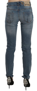 Blue Washed Mid Waist Skinny Casual Denim Pants