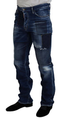 Blue Washed Patchwork Straight Fit Denim Jeans