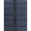 The Jacket by Herno expresses technical excellence and distinctive style through a design that merges knitwear comfort with the warmth of down quilting. The English rib texture blends harmoniously with the striped padding, creating a balance of material richness and lightness. The double-layer wool construction with dual zip and ribbed cuffs adds both function and refinement, while the high collar and flap pockets enhance its sophisticated appeal. The metal logo on the back completes a piece designed to accompany the season with effortless elegance.