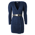 Discover the harmony of style and comfort with the Elisabetta Franchi Long-Sleeved Knit Dress. Perfectly tailored for the sophisticated trendsetter, this Italian-made dress features an elegant V-neck and a chic waist-cinching belt, creating a silhouette that speaks volumes of effortless elegance. Rich in texture and crafted from a luxurious blend of wool, acrylic, and polyester, this blue-hued dress is a versatile statement piece for any fashion-forward wardrobe. Embrace the allure of Elisabetta Franchi and make a bold statement with every entrance.