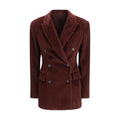 The corduroy cotton Jacket by Brunello Cucinelli blends retro charm with refined tailoring. The raised texture of the corduroy enhances the depth and richness of the seasonal hues, while the oversized fit, peak lapels, and double-breasted closure recall timeless menswear elegance. The signature monile embellishment, a hallmark of the house, adds a subtle feminine shimmer, elevating the jacket into a sophisticated expression of Italian craftsmanship and contemporary grace.