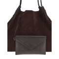 Crafted from soft, solid-color suede, the Etro Libra small Shoulder Bag embodies refined, artisanal style. The Pegasus logo embroidered on a leather appliqué on the front adds an iconic touch, while the braided handles and corner stitching highlight the meticulous workmanship. The suede interior houses a handy, matching pouch and is finished with a D-ring and lobster clasp closure. Metal feet add structure and protection to this elegant, distinctive accessory.