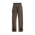 The Lisa Fur Belt Adorned Loose Fit Carpenter Pants by Darkpark offer a bold, modern take on utilitarian design. Crafted from cotton with a relaxed, wide-leg silhouette, they combine ease of wear with refined structure. The piece features belt loops, a zip-and-button closure, front and back pockets, and visible stitching along the hem. Subtle distressing and deliberate frayed cutouts at the lower leg lend an edgy, lived-in feel, while the faux fur belt detail adds a statement twist—balancing workwear functionality with Darkpark’s signature avant-garde flair.