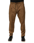 Brown Cotton Chino Mid Waist Men Jogger Pants