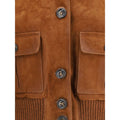 Suede leather Jacket by Valstar is a timeless style piece that combines craftsmanship and timeless design. Made of soft suede, it features a short model and structured silhouette, enhanced by a classic collar and front button closure. Ribbed cuffs and hem add a sporty touch, while the two flap patch pockets complete the look with functionality and character. Stylish and versatile, it’s the perfect choice for a refined yet casual wardrobe.