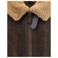 The shearling Jacket by Belstaff features a soft sherling collar for comfort and warmth. An adjustable waistband allows for a customized fit, while the collar can be closed with a buckle that is also adjustable. The garment features two side welt pockets and an applied logo patch on the left sleeve, which adds a distinctive and recognizable touch to the design.