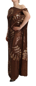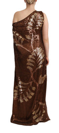 Brown Leaf Sequined Shift One Shoulder Long Dress
