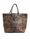 Brown Leopard BEATRICE Leather Logo Plaque Tote Bag