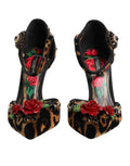 Gorgeous brand new, 100% Authentic DOLCE & GABBANA leopard heels pumps LORI made of velvet with hand-painted roses, pearls and crystals appliqués.