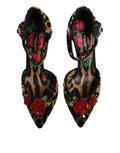 Brown Leopard Crystal Roses Pumps Shoes