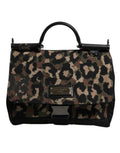 Brown Leopard Print Lacquard Nylon Sicily Tote Bag