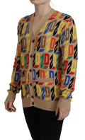 Brown Logo Long Sleeve Women Cardigan Sweater
