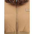 The Fendi cropped Down Jacket redefines winter outerwear with a contemporary elegance. Quilted padding and a high collar ensure warmth and protection, while the ribbed knit waistband in a tone-on-tone finish sculpts the silhouette with sophistication. Crafted from technical pink fabric, it is enriched with refined details: a plush shearling lining on the collar and a leather Fendi Roma patch on the chest. Side zip pockets and a front closure complete a design that seamlessly combines comfort with everyday luxury.
