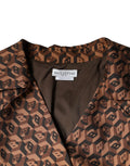 Brown Printed Long Sleeves V-neck Wrap Midi Dress