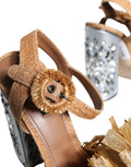 Brown Raffia Ankle Strap Crystal Sandals Shoes