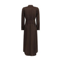 The silk Dress by Ella balances sophistication and practicality through a harmonious blend of style and lightness. Crafted from pure silk, it features a utility-inspired design with four applied pockets: two smaller ones on the chest and two larger ones on the lower part. The button-down front and classic collar lend understated elegance, while the cuffed sleeves enhance its tailored appeal. A matching scarf, separate from the dress, completes the look with a fluid and refined touch.