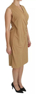 Brown V-neck Shift Knee Length Viscose Dress