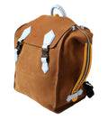 Brown Yellow Suede Leather Logo Backpack Bag