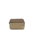 Fendi’s Camera Case Squared FF Shoulder Bag is a compact and refined model made of smooth beige leather combined with iconic FF canvas in the same tone. Embellished with a metal FF appliqué, it features an exterior flat pocket and a zippered main compartment. The interior is lined, while metal accessories are finished with palladium. The technical fabric crossbody strap, decorated with FENDI lettering, is adjustable and removable for versatility of use.