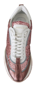 Step out in shimmering style with the latest Jimmy Choo Sneakers. These eye-catching kicks come complete with original tags, dustbag, and shoe box, ensuring authenticity and brand-new condition. The ‘Raine igf’ Leather Sneakers are a fashion statement in themselves, crafted with the distinctive Galactica Glitter Fabric and premium Calf Leather. An exquisite pink candyfloss hue elevates the luxurious design, perfect for adding a splash of color and sparkle to your ensemble.