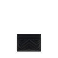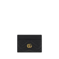 Calfskin Card Holder by Gucci, gold GG logo plaque on front, card slots on front and back, matelassé leather print.