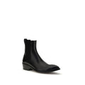 Tom Ford’s Men’s Chelsea Ankle Boots reinterpret a masculine classic with elegance and character. Crafted with sartorial care, they feature an ankle-length construction with side elastic for a snug, practical fit, and a pull-on heel for easy donning. The design is complemented by a slightly raised toe and a solid block heel, adding stability and a sophisticated touch to a timeless style.