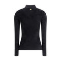 Versace’s chenille Top combines comfort and sensuality in a design with a bold flair. Featuring long sleeves and a half neck, it is made of a soft chenille that elegantly envelops the silhouette. On the back, a small Medusa studs sign the garment with an iconic touch, while the hook-and-eye closure adds a refined and feminine detail.