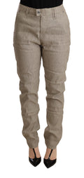 Beige Mid Waist Casual Baggy Stretch Trouser