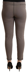 Gray Cotton Mid Waist Stretch Leggings Cropped Pants