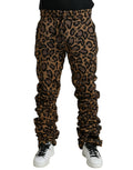 Brown Leopard Jacquard Jogger Pants