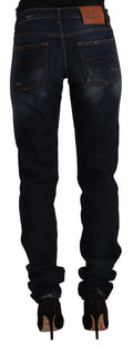 Dark Blue Washed Mid Waist Cotton Denim Skinny Jeans